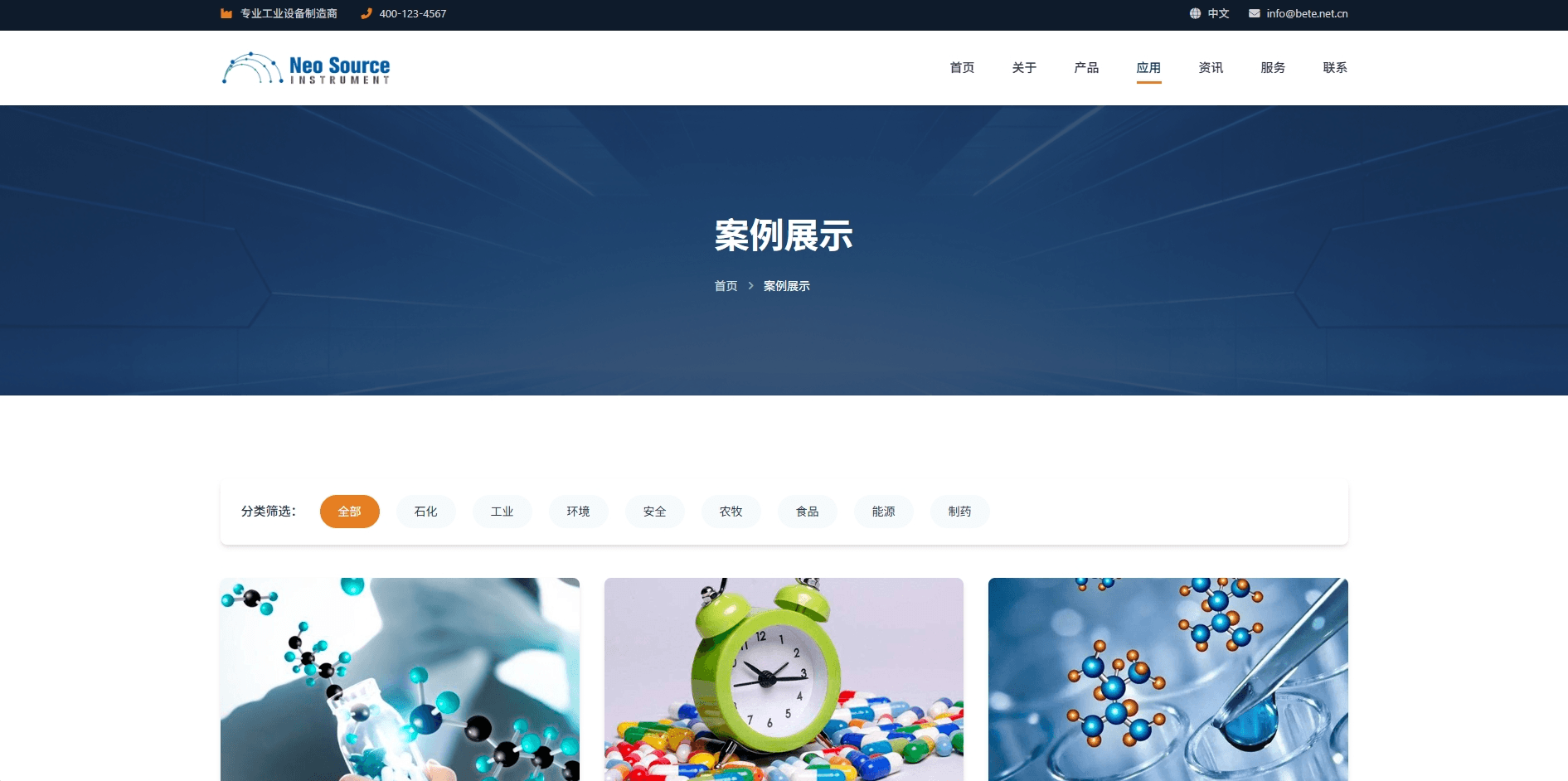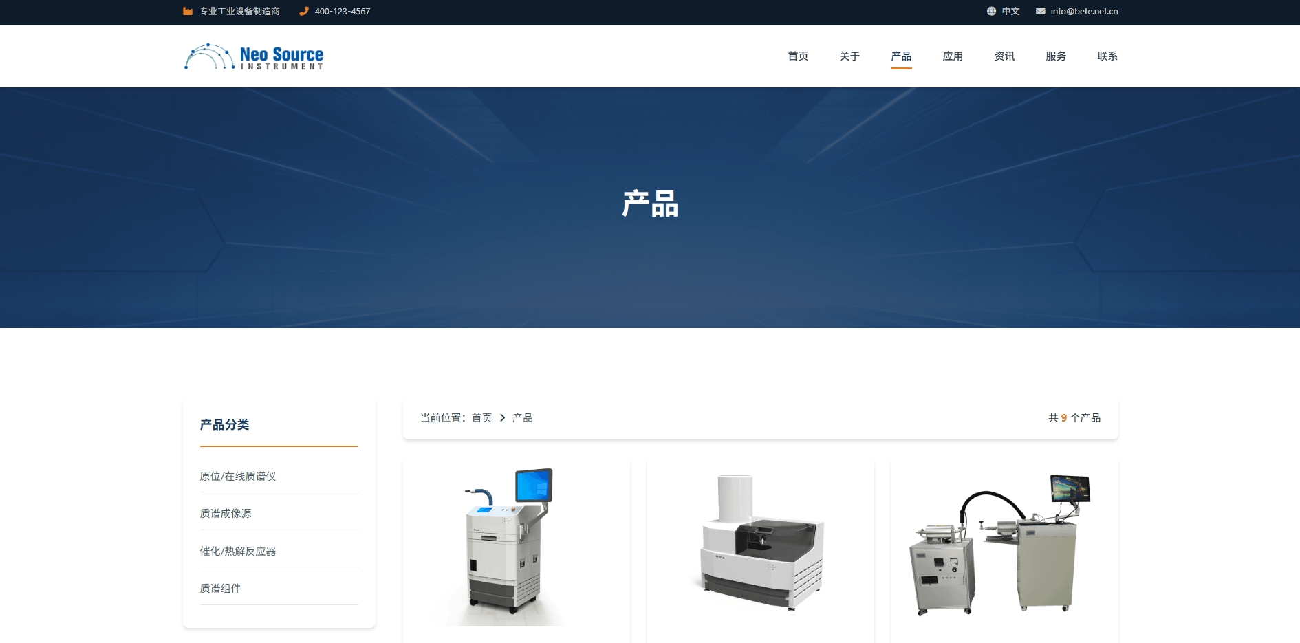 响应式工业产品仪器企业网站蓝色橙色